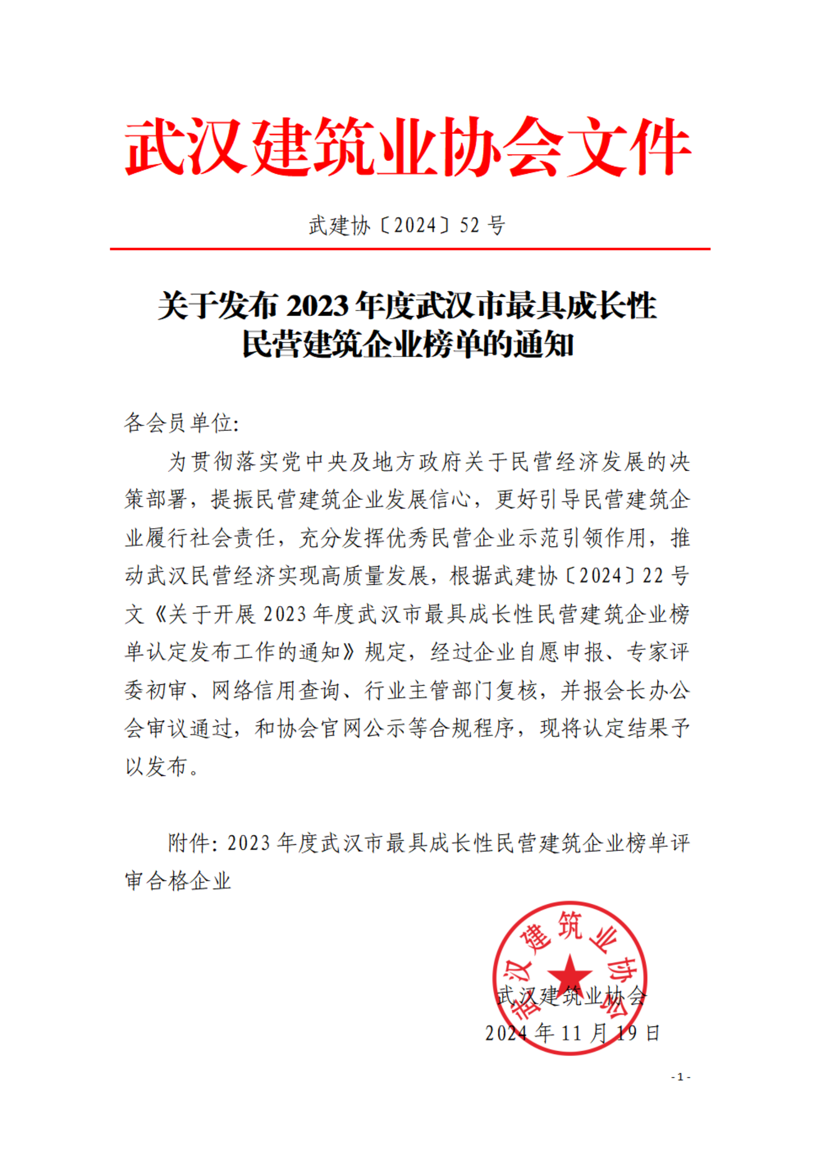 - 2024-11-22湖北省建工第五建設有限公司榮膺2023年度武漢市最具成長性民營建筑企業(yè)...[圖]